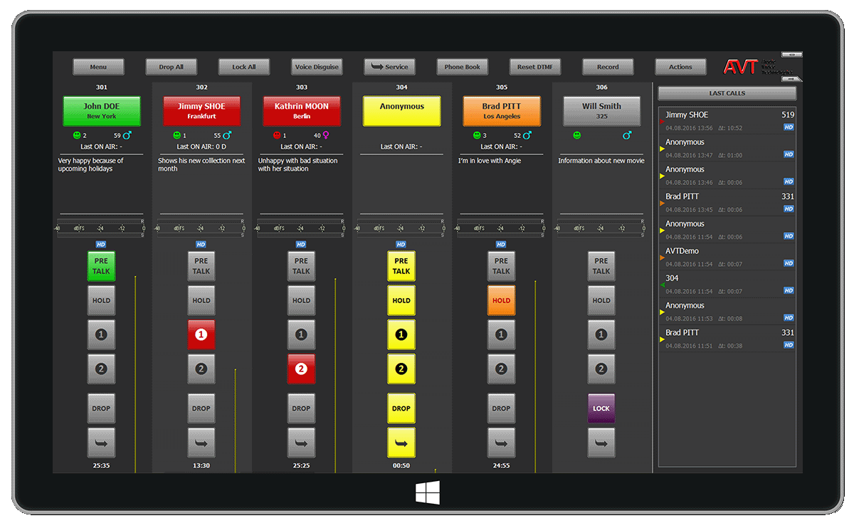 Besides, MAGIC THipPro Screener can also be opened in the Presenter Mode, which is a simplified view for the talk show host without data entry mask. Further modes are the Data Manager Mode and the Presenter ON AIR Mode showing only callers who are ON AIR together with the most important information which suitable for e.g. TV call-in shows.