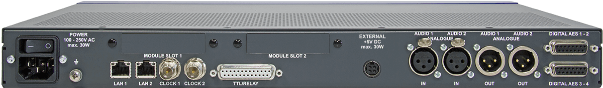 MAGIC THipPro provides two analogue and eight digital Audio inputs and outputs plus two handset/headset interfaces. Optionally, the AES67 upgrade allows the use of eight additional audio channels (8 x RX (2 streams) and 8 x TX (1 stream)) via IP. Alternatively, a Ravenna or Dante module is also available. The Audio interfaces can be assigned freely to the up to 20 installed workplaces and 6 studios.