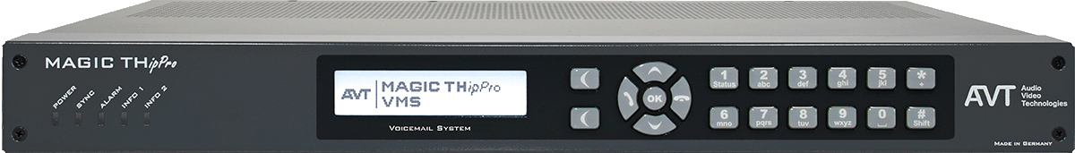 MAGIC THipPro Voicemail System is available with 8 or 16 caller lines. The DSP-based recording system for connection to VoIP-capable PBXs or VoIP main lines is designed for automated recording of up to - in the maximum configuration level - 32 simultaneous calls, which are stored as WAV files on a file server.