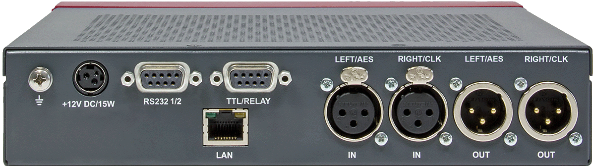 Die Audioprogramme können über eine analoge oder digitale Stereo-Schnittstelle (umschaltbar) zugeführt bzw. ausgegeben werden.