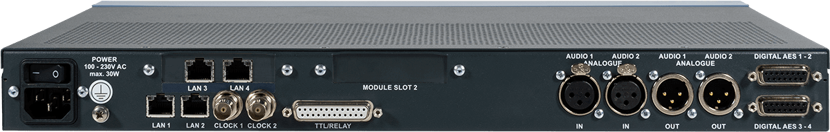 Mit dem AES67-Software-Upgrade sind optional acht zusätzliche Audiokanäle RX (1 Stream) und zwei zusätzliche Audiokanäle TX (1 Stream) über IP via AES67 verfügbar.