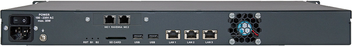 MAGIC DABMUX plus kann sowohl für Small-Scale-Anwendungen als auch für High-End-Systeme eingesetzt werden. Das Gerät ist als 19“ x 1HE System mit integriertem Netzteil und redundantem 12V Netzteil ausgeführt. Das zuverlässige Signalprozessor-basierte System verfügt über drei Gbit-Ethernet-Schnittstellen, die die Konfiguration von bis zu drei IP-Adressen pro Schnittstelle sowie VLANs ermöglichen. Das System verfügt außerdem über 2 x USB 2.0 Schnittstellen und einen SD-Kartensteckplatz für zusätzliche Anwendungen. Über einen Modulsteckplatz kann das System optional mit einem ETI E1/2-Mbit oder einem Dual LAN Modul erweitert werden. Das System verfügt über ein grafisches, farbiges Display, allerdings ist eine komfortablere Steuerung, Überwachung und sehr einfache Konfiguration über einen HTML5-fähigen Webbrowser möglich.